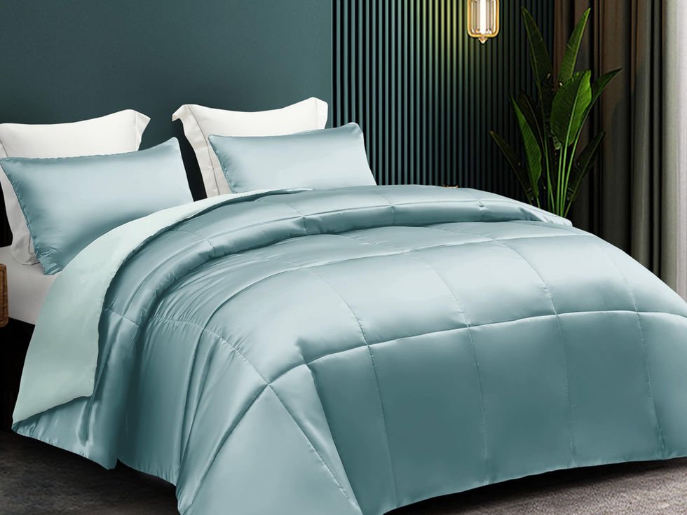 Package include: The twin comforter set includes a twin size comforter (68"X88"), and a standard satin pillowcase (20"x26"). There are always ones you would like or goes well with comforter Soft and breathable: Satin duvet set is smooth, soft, breathable and sensitive skin-friendly. The silk-like fabric full of the extraordinary texture, which is ultra soft against your skin. This comfy and breathable satin duvet will make you refreshed when you wake up Unique design: This ultra comfortable bedding set is double-side design. Top side of the duvet is pure satin fabric with an elegant style box stitching that prevent the fill from shifting, reflecting charming pearly lustre in the light; The other side is made of brushed fabric, which makes the duvet more breathable and long-lasting than cotton fabric; You could choose either one side to cover as you like Multi purpose usage: This satin comforters is lightweight but could reach the high demand of feeling warm in winter and cool in summer so that it can be used all the year round. This comforter set can decorate your room excellently and create a luxurious style. It is also a sweet present for your families and friends, offering them an ample and relaxing sleeping with this super soft and lightweight comforters Easy to care: Machine wash cold separately, gentle cycle, tumble dry low. Because of the vacuum packaging, the product will be wrinkled when it is just taken out, please air out the comforters in the sun and pat them gently so as to make it fluffy again. Besides, the satin fabric can not withstand high temperature, please do not bleach or iron