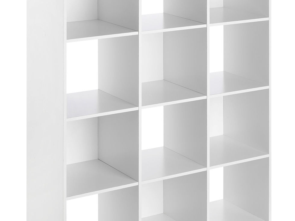 Features 12 cubes with 3 shelves for organization and display of a variety of household items Includes 6 back panels for added stability Can be used to organize the bedroom, bathroom, garage, or entryway Inside cube dimensions: 11. 2 W x 11. 2 H x 11. 7 D inches Assembled dimensions: 11. 75 L x 47. 63 W x 35. 75 H inches