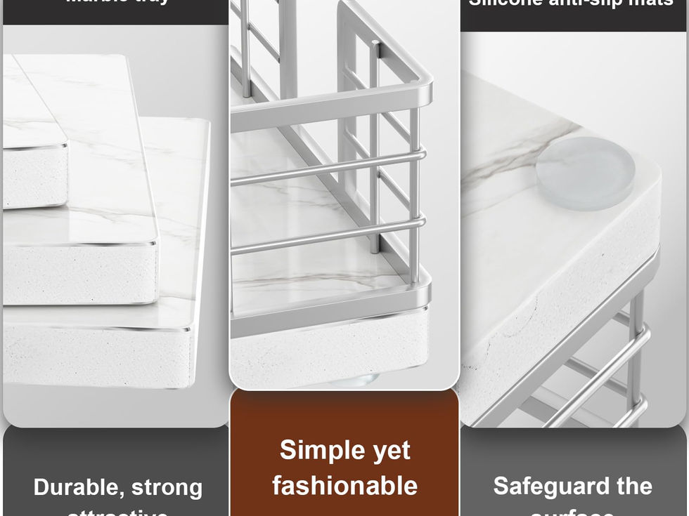 Quite Versatile: This guest towel holder hold paper towels in the guest bathroom for hand drying; hold paper bath towels for your powder room, easy to retrieve towel when needed; It can also be used as a lunch napkin holder, looking very nice on the dining table Large Size: The dimensions of the Bathroom Napkin Holder are 9.06 x 5.51 inches, with internal dimensions of 8.66 x 5.19 inches, It is large enough to accommodate all width and length guest towels; It fits on the back of the toilet, Will use it all year Useful and Ornamental: Having lots of friends using your bathroom and not wanting everyone using the same hand towels this was a perfect solution. This guest towel holder is pretty and fits your bathroom decor; a great addition to your guest bathroom Cost-effective: No assembly required, easy to clean. The tray crafted from iron and marble is simple and attractive. The solid bottom ensures items won't fall. With silicone non-slip pads, it provides both anti-slip functionality and better protection for surfaces Gave as gift:This holder is extremely versatile as well as good-looking; It's nice to have this in your home to help keep things organized and in a place. this is a thoughtful gift for holiday time