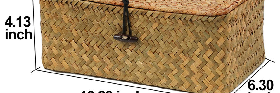 【Package Included】Small 10.23"L x 6.3"W x 4.13"H, 1 Pack. Due to the handmade nature, the dimensions may vary within 1/4 inch. Woven Baskets can be stacked when not in use, saving space. 【Natural Seagrass】Our seagrass storage baskets are hand-woven with high-quality natural seagrass and metal frame inside, making them sturdy and functional as well as beautiful. The unique button design secures the lid to the box for added security and aesthetics. 【Versatile Storage Basket with Lid】Ideal for the storage of snacks, fruit, remote control, towels, toilet paper, toiletries, socks, underwear, stationery, accessories, chargers, data cables, toys, and other household items. 【Keep Home Neat】Perfect for the pantry, bathroom, kitchen, bathroom, living room, bedroom, nursery, dormitory, and office. A basket with a lid can make your closet and room look neater. 【Fantastic Gift】Decorative storage baskets are hand-crafted and can be given as standalone gifts to friends, family, and lovers; You can also put the gifts in the seagrass basket as an ideal housewarming or birthday gift!