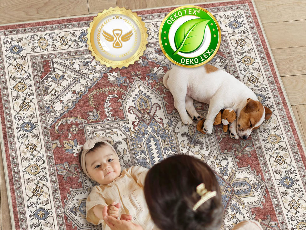 SIZE GUIDE & COLOR NOTICE: Before purchasing an area rug, please measure your furniture to ensure the right fit. Due to monitor differences, the actual color of the rug may slightly vary from the photos NON-SLIP & FAMILY-FRIENDLY RUG: This washable rug features a TPR non-slip backing, ensuring stability on various flooring surfaces while protecting against helps protect against everyday wear and tear. The 0.24-inch low-pile design helps resist pet hair and is easy to maintain. Crafted from OEKO-TEX certified microfiber, it is stain-resistant, Suitable for Homes with Pets, and designed for households with children, providing a comfortable and cozy space VINTAGE STYLE RUGS FOR LIVING ROOM & MORE: Designed with a timeless vintage medallion pattern, this area rugs enhances any space with warmth and texture. Perfect for home decoration, it complements modern, farmhouse, and retro interiors, making it an excellent choice for living rooms, bedrooms, nurseries, and dining areas VERSATILE & DURABLE AREA RUG: This 6x9 durable rug is ideal for high-traffic areas, including living rooms, bedrooms, kitchens, playrooms, and home offices. It also suits commercial spaces such as Suitable for both residential and professional settings, combining both style and practicality EASY-CARE & MACHINE WASHABLE RUG: This washable rug is effortless to maintain—regular cleaning can be done by vacuuming, wiping, or using a robot vacuum. For deeper cleaning, machine wash with cold water (avoid bleach) to maintain its stain-resistant and fade-resistant properties. Foldable and easy to store, this area rug is designed for lasting style and convenience