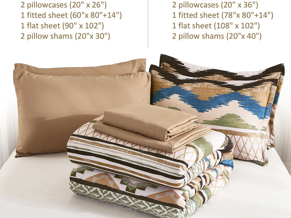 [7 Pieces Bed in a Bag] This plaid brown boho Southwestern king bed comforter set include 7 pieces. 1 Aztec comforter 90" x 103" + 2 pillowcases 36" x 20"+1 Fitted Sheet 78"x 80"x14"+1 Flat Sheet 102"x 108"+2 Pillow Shams 20"x 40". NOTE: No Pillow Insert Includes. [Unique Reversible Boho Stripe Design] This plaid brown king Southwestern comforter set is simple and fashionable bohemian style, reversible boho stripe pattern. A side is brown stripe pattern, B side is plain brown. The color matching of blue and green can match your room decoration very well. This comforter set king size use high-definition printing technology, simple and personalized design gives your bedroom a stylish decoration, suitable for people of all ages. [Ultra Soft Microfiber Material] This plaid brown boho Southwestern comforter set uses super soft microfiber material, filling the comforter with whole piece of microfiber. Frim stitching with exquisite hemming, the microfiber solid comforter is highly durablility, high tensile strength, wrinkle-resistant, fade-resistant and machine washable. King sized comforter bedding set, moderate thickness, suitable for all seasons. [Easy to Care] Polyester microfiber easy care & machine washable, never fade, wrinkle free, resistant to dust, easy to remove pets' fur. Our comforter set king size can be used directly without duvet cover,more convenient to use. [Warm Tips] As the brown boho stripe comforter set is packed in vacuum bags, it is recommended that you dry the comforter in the sun and gently tap the comforter to make it fluffy again. If you have any questions, please contact us.