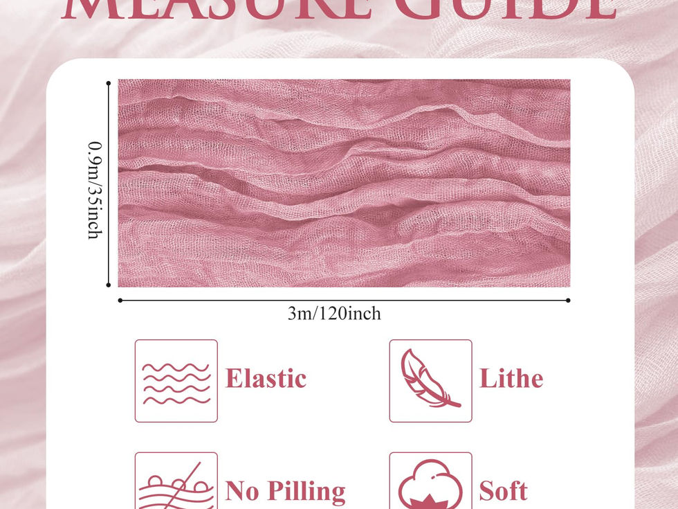 【Table Runner】You will get 12 pieces, 35" W x 120" L(10FT) cheesecloth table runner. The gauze table runner is long enough to span a larger table and drapes beautifully on table, making it ideal for special occasions where you need to host larger groups. The elegant, stylish rustic table runner add beauty to your table and a romantic atmosphere to your occasion. 【Soft and Durable Material】The table runner is made of high quality premium sheer fabric with wrinkled design, soft to touch, comfortable and durable, featuring good durability and flexibility. The vintage wedding table runner is lighrweight, not easy to fade, not shrink thus reusable. The soft table linen gracefully across your banquet table. 【Elegant Design】This romantic cheese cloth runner can be used as a decorative element for your dining table or party. It is an excellent addition to any event decoration, perfectly matched with flowers, candlesticks, and green plants, adding a touch of elegance to your overall decoration. Different colors and multiple quantities to choose from to match any event you want. 【Widely Occasion】This boho table runner is perfect for any event, can be widely used wedding, birthday, bridal & baby shower, engagement banquet, candy buffets, Valentine's Day, Christmas, Thanksgiving and other special events. Your event will have a great rustic look with a table runner. 【Care Instructions】These long table runners are recommended for hand wash in cold water with mild detergent, or machine wash in the gentle cycle with a laundry bag. No ironing required to maintain wrinkled texture. Lay flat or hang dry. Do not bleach for keeping these cheesecloth table runners for a long time use.