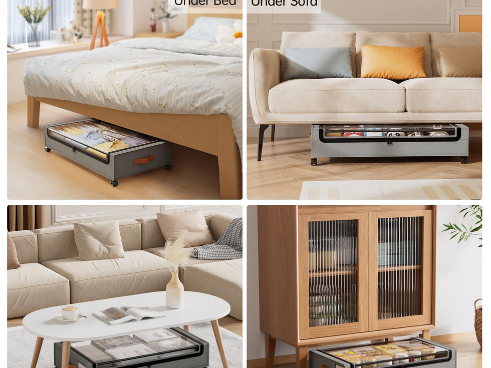 Yecaye 4 Pack Under Bed Storage with Wheels, Under Bed Storage