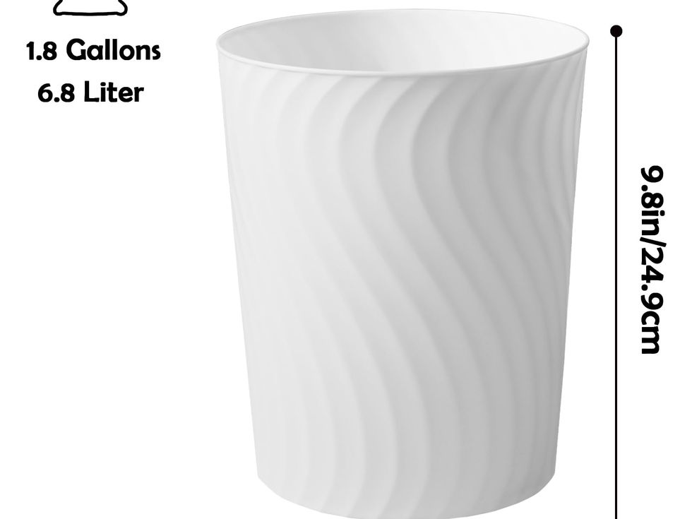 【Compact Design, Thoughtfully Sized】The design makes the small trash can ideal for small spaces. Perfect for next to toilet, under cabinets, sinks, desks, and other places in need of a small garbage can. 7.9" diameter x 9.8" high, 1.8 gallon/6.8 liter capacity. Additionally, we've included 12 rolls of extra-thick garbage bags for your convenience. 【Functional & Versatile】The bedroom trash can is not only for bathroom, kitchen, office, condos, dorm rooms, cabins, campers, RVs , apartments, but also good to store cleaning supplies of bathroom or kitchen, you could custom it as needed. 【Quality Constructed】Made of high quality plastic, the wastebasket is sturdy and durable. It will not chip, dent, or fade even after long time use. The bottom is raised to reduce wear and increase service life. 【Simple Maintenance】Simplify your upkeep routine with this garbage can's easy cleaning process. A quick wipe down of the exterior with a damp, soft cloth suffices to preserve its pristine appearance. 【Stylish & Modern Appearance】Screw thread shape design, simple and fashionable, makes this trash bin complement most home decoration, very suitable for daily use.