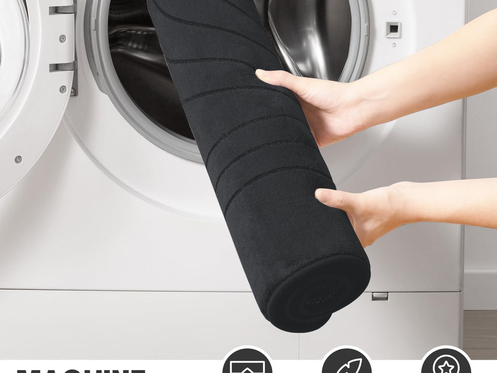 【4 Piece Bath Rug Set】Includes toilet lid cover 18' x 16', small bathroom rug 24' x 16', U-Shaped counter rug 24' x 20', and large bath rug 32' x 20'. Bath mat can be used by the tub, in front of the sink, on the vanity, or in the living room. 【Super Soft and Comfortable】YIHOUSE memory foam bath mat set is made of 40D high-density memory foam. The slow rebound feature provides soft support under your feet and helps to better distribute pressure under your feet and better protection for knees from cold floors 【Non Slip Bath Mat Set】The bottom of the bathroom mats set is made of a new drip dots molding technology process for a stronger grip to help prevent movement and slipping. A safe barrier for the elderly and children after bathing 【Water Absorbing Bath Mat】Dense holes in the black memory foam bathroom rug set push airflow across the surface for fast water absorption; Keeps floors dry when you step out of the tub, shower or at the sink and keeps drips from messing up your bathroom 【Easy To Clean】Machine wash in cold water and mild detergent (no chlorine or bleach), tumble dry on low speed or hang to dry. The material is durable and will retain its color after repeated washing and drying