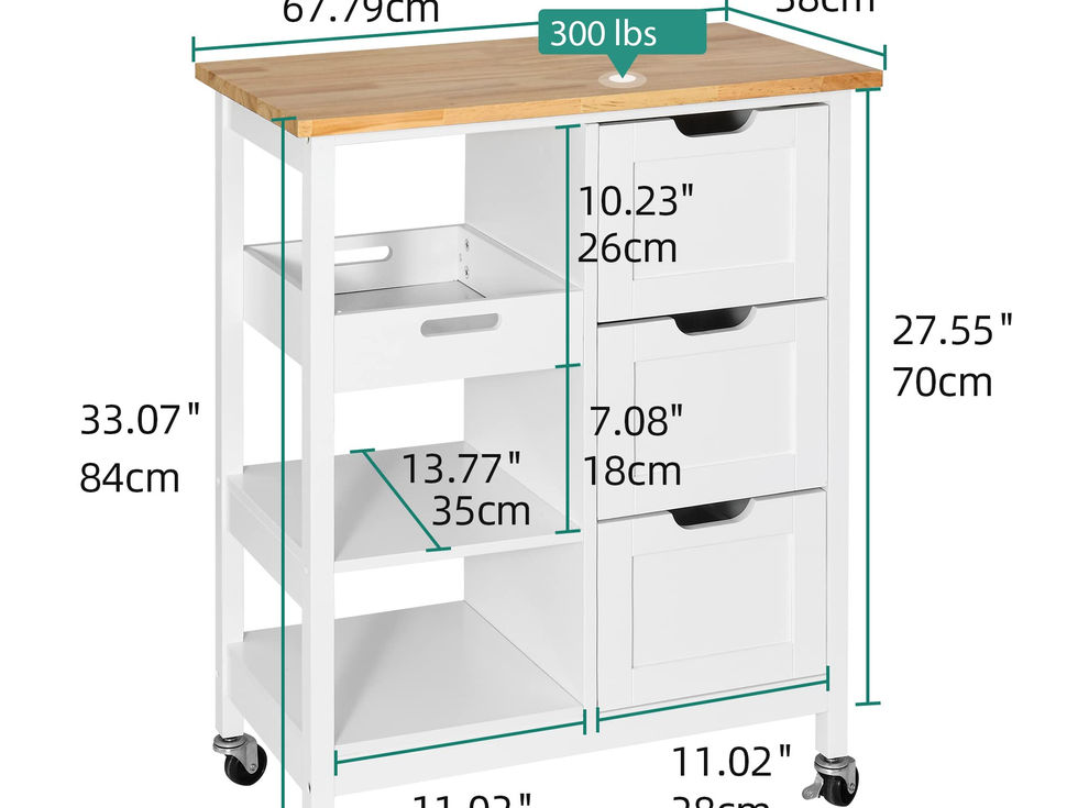 STYLISH MOBILE CART: YITAHOME kitchen serving cart offers extra storage space to hold kitchen utensils, prepared food; you can also easily move around the kitchen, dining room or garden to enjoy mealtime or teatime with family & friends. STABLE STRUCTURE: Thick solid pine wood top on 4 sturdy legs can support weight up to 300lbs without shaking; CARB Phrase Ⅱ grade MDF painted in smooth food-safe finish makes them waterproof and scratch-proof for easy cleaning and food preparation, ensuring healthy kitchen & dining room environment. ENOUGH STORAGE SPACE: The wide top of this rolling storage cabinet can be used as cutting board or stand to put a microwave oven, roaster; 3 open shelves & 3 drawers to classify cutlery, pots, pans & other essentials to keep your culinary space neat & clean for small kitchen & dining room. EASY TO MOVE: 360° industrial wheels are easy to move anywhere needed and can bear heavy loads without breaking, sturdier than other plastics; 2 of them are lockable to ensure high stability when stopped. QUICK ASSEMBLY & AFTER-SALE SERVICE: Comes with clear instruction & tools so that you will never get stuck in assembling; we strive to provide customers with great products and services; Any problem will be solved promptly to your satisfaction.