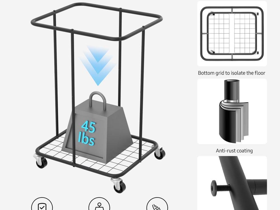 [Mobility & Convenience]: YKDIRECT Laundry basket is a flexible wheeled design with 4 rolling wheels, which ensures easy movement and solves heavy lifting problems. You can lock the brake when not using it. With a removable inner washing bag, more convenient to wash clothes. [Multi-functional & Portable]: Large laundry hamper with a capacity of 39.6 gallons (150 litres), can meet all your needs, and easy to store dirty clothes. Not only is it a tall laundry cart, but can also be an organizer bin for kids' toys, books, and sundries storage to make the room clean. [Stabilized & Eco-Friendly]: The bottom and frame are made of metal material, which makes the laundry basket stronger carrying capacity and stability. Ideal for your daily laundry needs and your home storage use. [Removable Laundry Bag]: The laundry bag is durable and dustproof. Removable design so that you can remove it from the frame to carry it according to your needs. MAINTENANCE: The laundry bag should not be washed. Gently wipe or rinse it with water, then dry it with a towel or rag or air dry it naturally to avoid damaging the waterproof layer. Customer Service: If you have any difficulties with our products or have any questions, please contact us through your order and we will be happy to assist you. (The product is protected by intellectual property.)