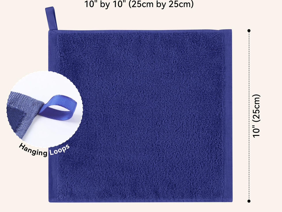 NATURAL FABRIC: Made with rayon derived from bamboo our washcloths have a soft and plush feel compared with normal cotton ones, offer the perfect combination of softness and strength. VALUE BUNDLE: These hand towel are the perfect small-sized 10‘’x10'' to keep next to yoga mat, in golf bag, in kitchen, in bathroom or any place where a larger size towel is unnecessary. Not only for adult use, but also for baby or toddler. SUPER ABSORBENT: Our towels made of rayon derived from bamboo are super absorbent than cotton. Our washcloths are designed to provide maximum absorbency also insure quick drying. EASY CARE: These face cloths are durable, machine washable, tumble dry on low and can stand up to multiple wash cycles. They become plusher and softer after the first wash, fluff up beautifully and no shrinkage. REUSABLE - Our towel set has reinforced stitching to make the washcloths last longer. Reusable and will get softer with every wash.They are chemical free, making them not only better for your baby, but also better for the environment.