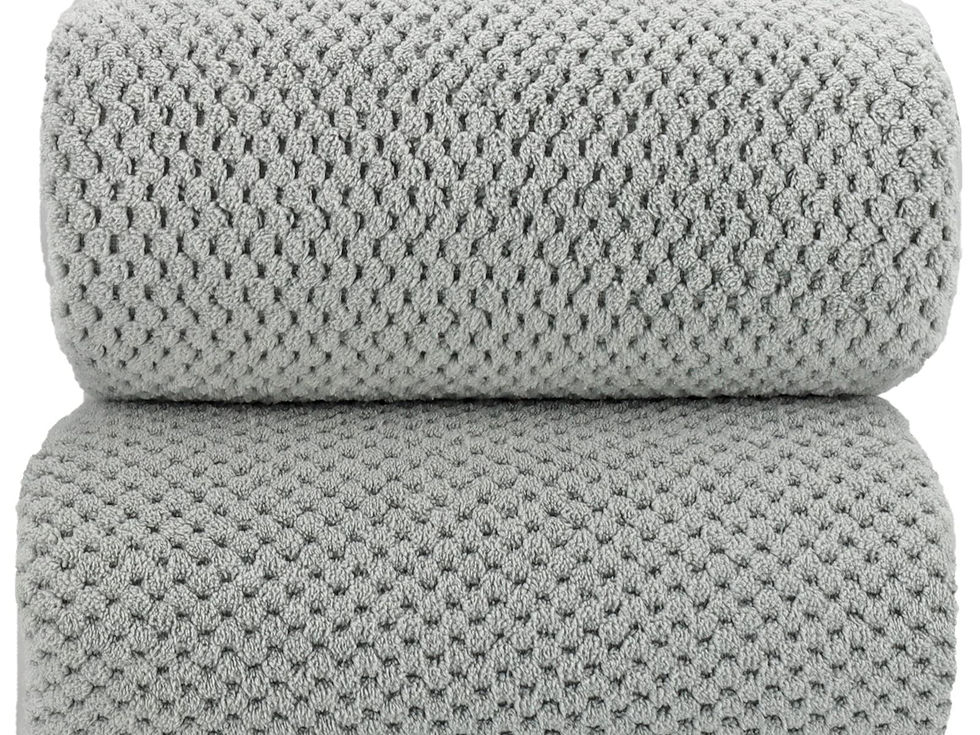 OVERSIZED:The size of this bath sheet is 39.37x78.74 inches(100x200CM), which is a Extra large bathroom towel.it's so big ,at first glance you may feel that this bath towel is like a blanket,So,You may need a little time to get used to it, then you will like it.it can full wrap around and tuck in no problem. SUPER SOFT and LIGHT WEIGHT: The Bath Sheet Material is Composed of 80% Polyester Fiber and 20% Nylon.So it looks not as thick as traditonal towel, but it's super soft , highly absorbent,and very light weight, when you wrap it around your body, you won’t feel like it is weighing you down. PATTEN and LINT FREE: The front of the bath sheet looks like a waffle pattern, and the back is plush with a little elasticity,You can wash the bath towel once before you formally use it, so that the residual fluff generated during the production process of the towel can be cleaned and lint free. REGARDING the COLOR: The pictures are taken in kind of the product, maybe slightly different chromatic aberrations will appear due to the influence of light or mobile phone screens or computer screens.and the bath sheet won't fade. TIPS:The bath sheet can be washed by hand or machine,Wash the bath towels separately from other items.