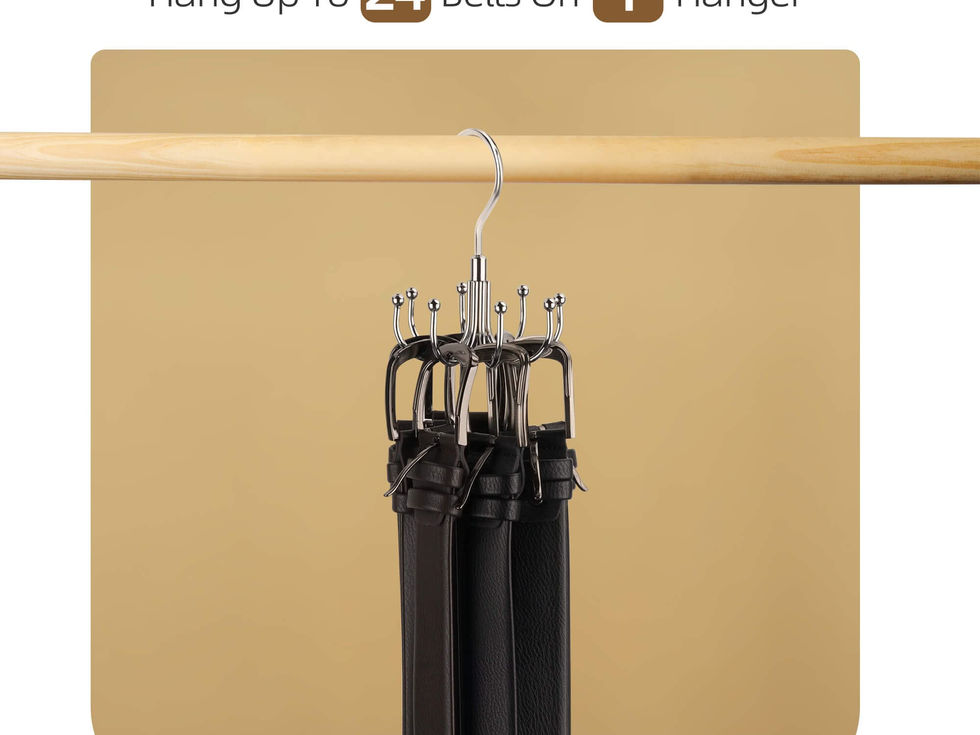 Closet Essential Organizer: Our upgraded hanger features a swivel function that lets you easily access any of its 8 hooks, hassle-free accessibility to all your accessories from any position, making your daily routine more efficient than ever - from belts and scarves to hats and jewelry. Maximize Your Closet Space: With its unique design, every hanger can hold up to 24 belts (3 hooks each) or other items like bras, tank tops, ties, and purses, while saving valuable closet space and restoring order to your closet. Closet Accessories Organizer: The sturdy metal construction of our hanger ensures its stability and durability, allowing it to hold even heavy items without bending or tilting. This reliable closet helper is designed to last for years, making it a valuable addition to your organizational tools. Quick and Easy Visibility: Say goodbye to the frustration of rummaging through cluttered closet shelves - our hanger provides quick and easy visibility to all your accessories, so you can quickly find and grab what you need before heading out the door. Eco-Friendly Design: At ZEDODIER, we're committed to creating products that are both functional and environmentally responsible. Our hanger is made with eco-friendly materials and its production and recycling process won't cause any harm to the environment.